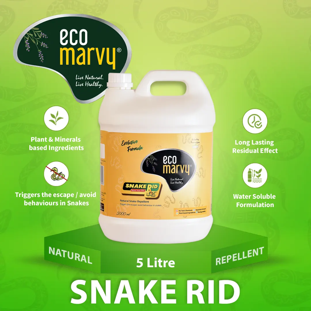 EcoMarvy has introduced a 5 Litre Best Snake Repellent called SNAKE RID, the most effective repellent formulation with natural ingredients, a ready-to-use spray to eradicate the disruption caused by snakes. As it is the Natural snake repellent & anti-snake spray in India and contains only natural ingredients & zero chemical agents, efficient for gardens, agriculture fields & plot areas.