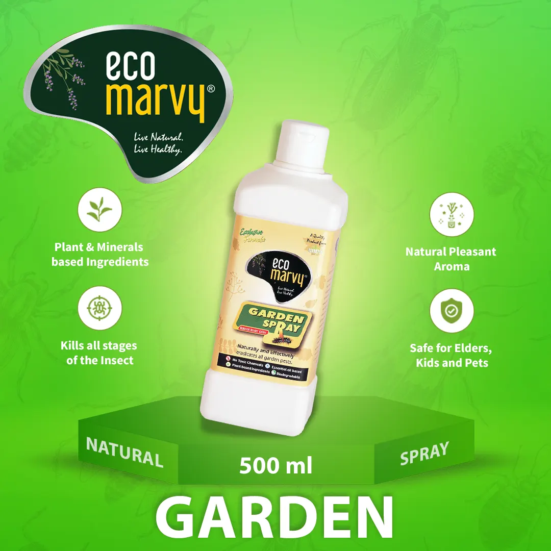 EcoMarvy has introduced a 500ml Natural Garden Pest Spray called GARDEN SPRAY, the most effective organic pesticide for plant formulation with natural ingredients, a ready-to-use spray to eradicate the disruption caused by unwanted garden pests. As it is the best garden pesticide & one of the cost-effective natural pesticides for plants in India that contains only natural ingredients & zero chemical agents, efficient for gardens, agriculture fields & plot areas.